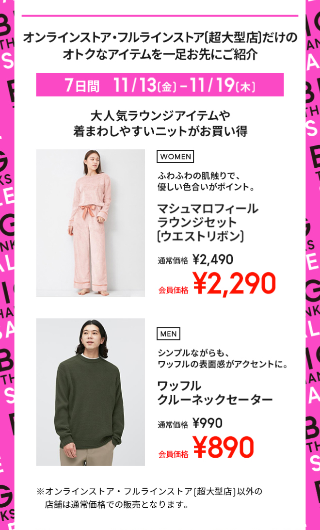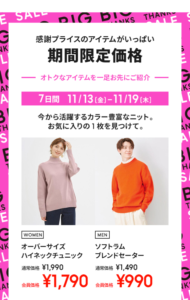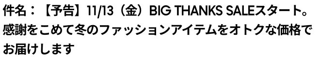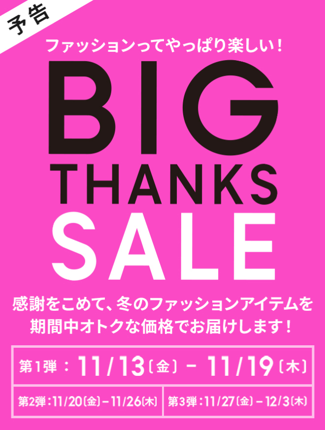 【予告】11/13(金)BIG THANKS SALEスタート。感謝をこめて冬のファッションアイテムをオトクな価格でお届けします