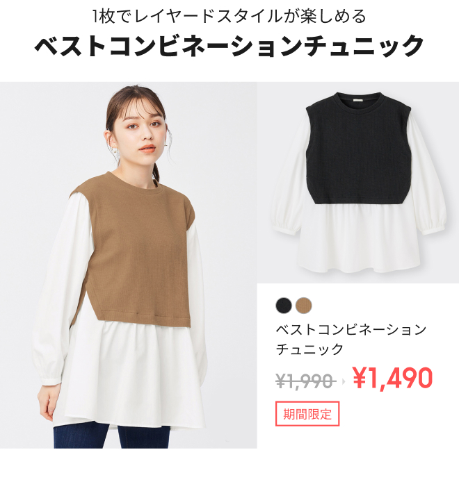 【本日から特別価格】¥1,490ベストコンビチュニックや¥1,490オープンカラーシャツなど人気アイテムがおトクに